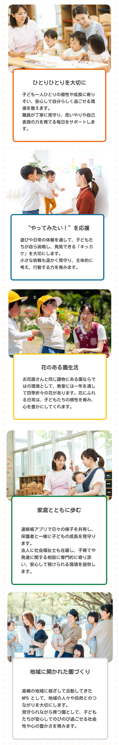 ご家庭や地域と手を取り合い、専門的な視点からも子育てに寄り添いながら、社会全体で子どもたちの健やかな成長と、